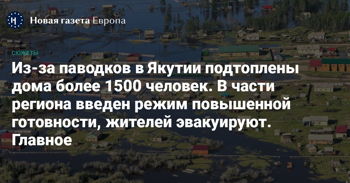 После проливных дождей в Якутии резко поднялся уровень воды в горных реках: затоплены дома, сенокосы и дороги. В нескольких районах объявлен режим повышенной готовности, людей эвакуируют к родственникам и пункты временного размещения. Всего в Оймяконском районе подтоплено 347 дворовых территорий в пяти населенных пунктах.