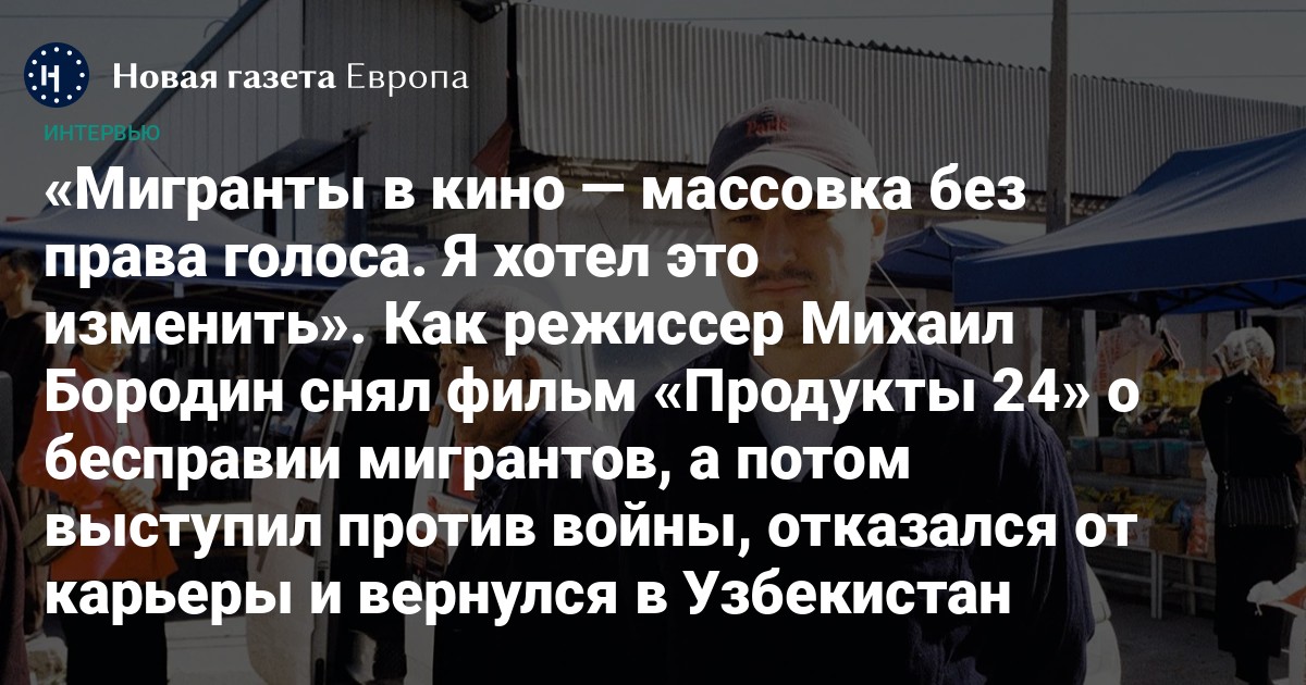 Молодой режиссер Михаил Бородин — участник Каннского и Берлинского кинофестивалей, чей фильм «Продукты 24», рассказывающий об эксплуатации мигрантов, вошел в программу Berlinale Panorama в феврале 2022 года. Имеющий русские и узбекские корни, он приехал в Москву из Ташкента в 2010 году и прошел путь от разнорабочего до одного из ведущих авторских режиссеров нового поколения, чьи фильмы попадали в списки лучших по версии журнала Искусство кино.