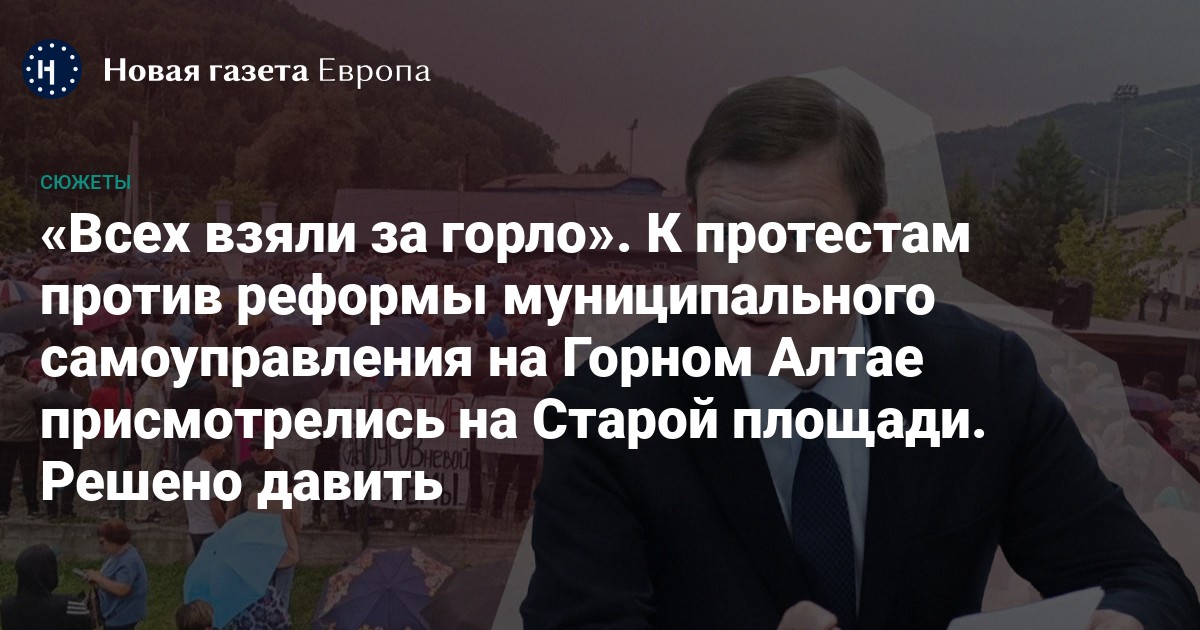В итоге митинг так и не был согласован: во всём регионе не нашлось места для протестующих. Это должно было быть уже второе массовое выступление — первая акция против реформы состоялась в республике ровно месяц назад, 21 июня, и собрала несколько тысяч участников. После чего за происходящим на Горном Алтае стали внимательно наблюдать из Кремля.