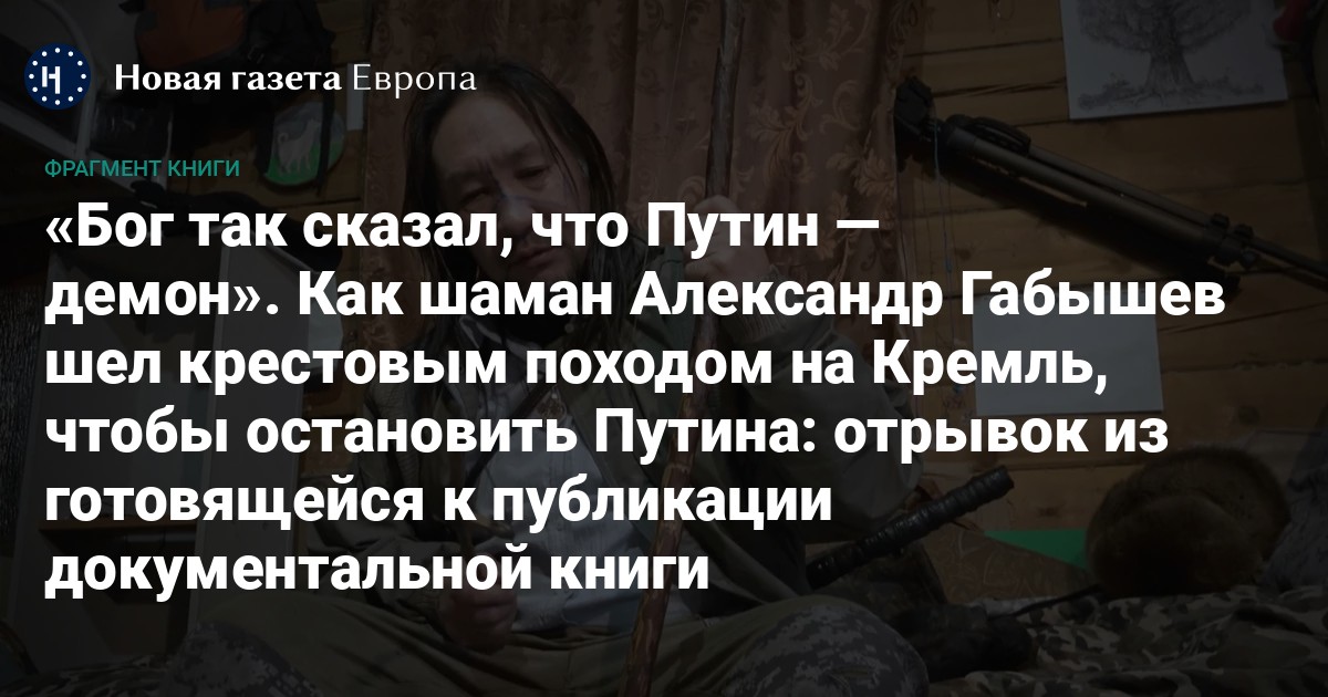 «Новая газета Европа» публикует отрывок из книги: о том, как Габышев шел по трассам Якутии, Забайкальского края и Бурятии, постепенно набирая сторонников и распространяя весть о своей миссии. В публикуемых главах шаман встречается со своими преданными адептами — и впервые выступает на протестном митинге.
