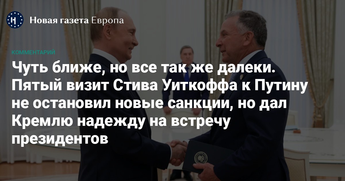 Это был уже пятый визит Уиткоффа в Россию, и многое говорило о том, что он окажется решающим: 8 августа истекает срок жесткого ультиматума, который Трамп выдвинул Москве.
