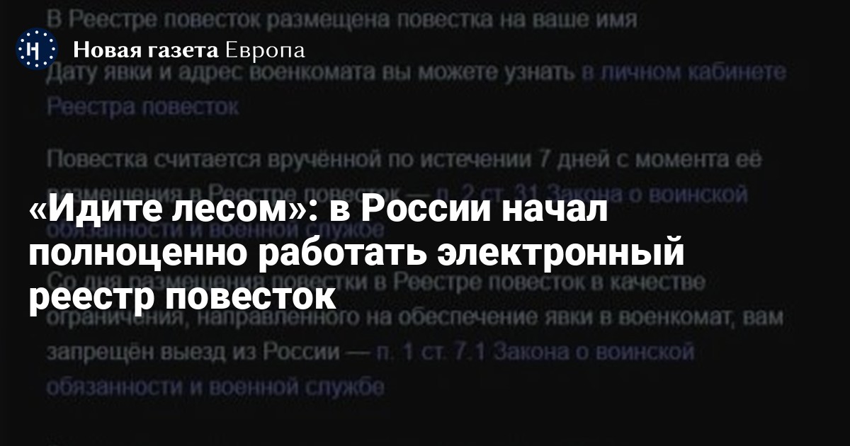 «До сегодняшнего дня его [реестра] полноценный запуск официально не подтверждался, но за последние месяцы появились признаки готовности: массовая рассылка уведомлений о внесении данных», — пишут авторы «Идите лесом».