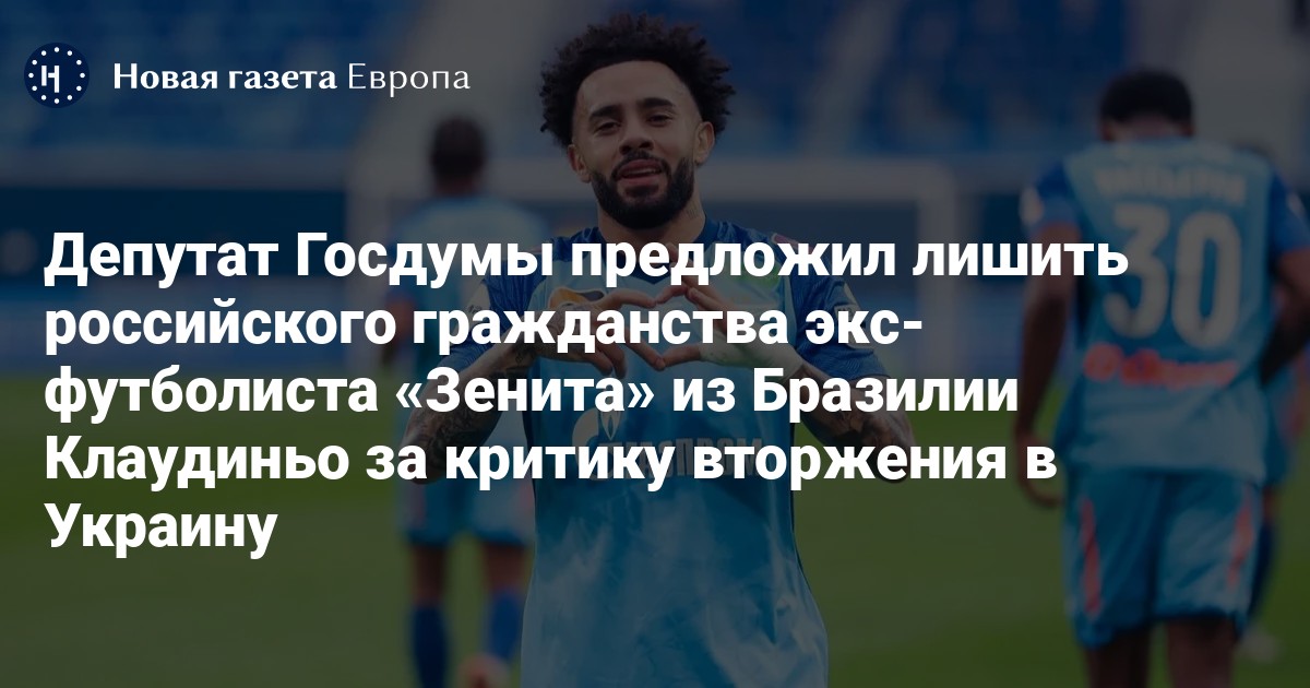 Депутат Госдумы от партии ЛДПР Дмитрий Свищев заявил, что подготовит запрос в правоохранительные органы по поводу высказываний бывшего полузащитника петербургского «Зенита» и олимпийского чемпиона Токио в составе сборной Бразилии Клаудиньо о войне в Украине. Об этом он сказал изданию «Абзац».