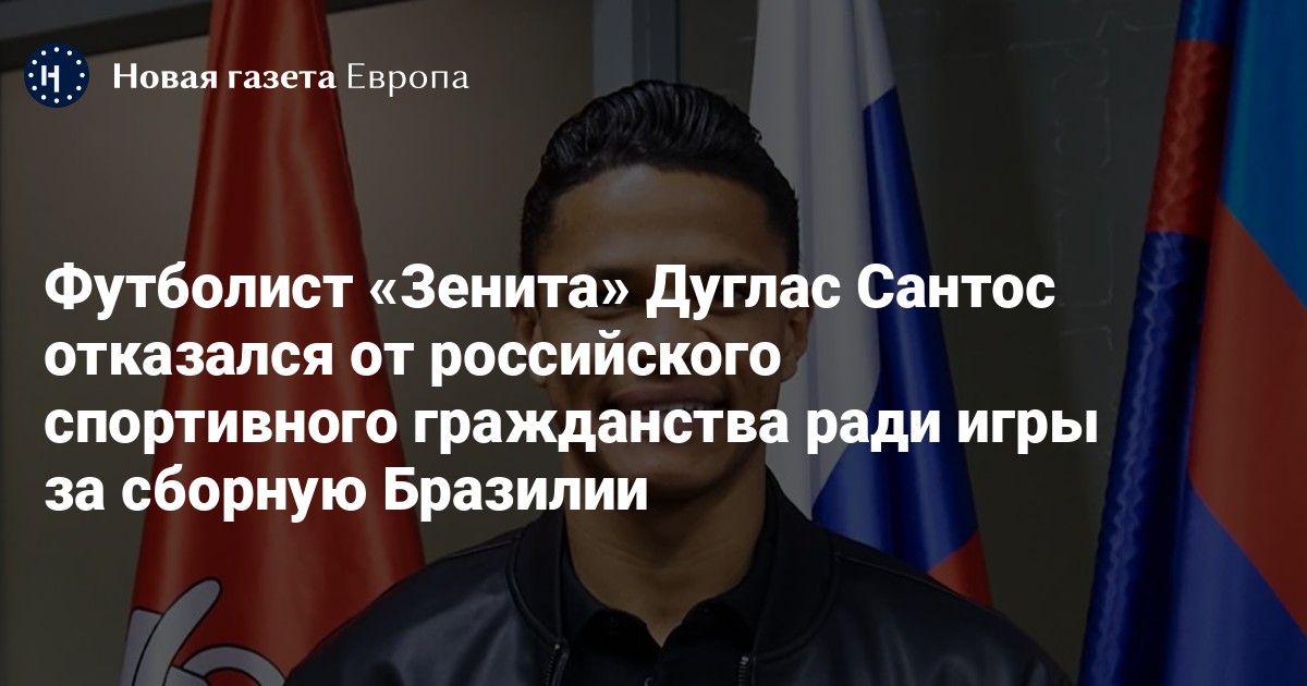 Получивший осенью 2024 года российский паспорт капитан и защитник петербургского «Зенита» Дуглас Сантос вновь сменил спортивное гражданство, теперь он будет выступать за сборную Бразилии. Об этом сообщили в Международной федерации футбола (ФИФА), информацию также подтвердил агента игрока Тияго Фрейтас.