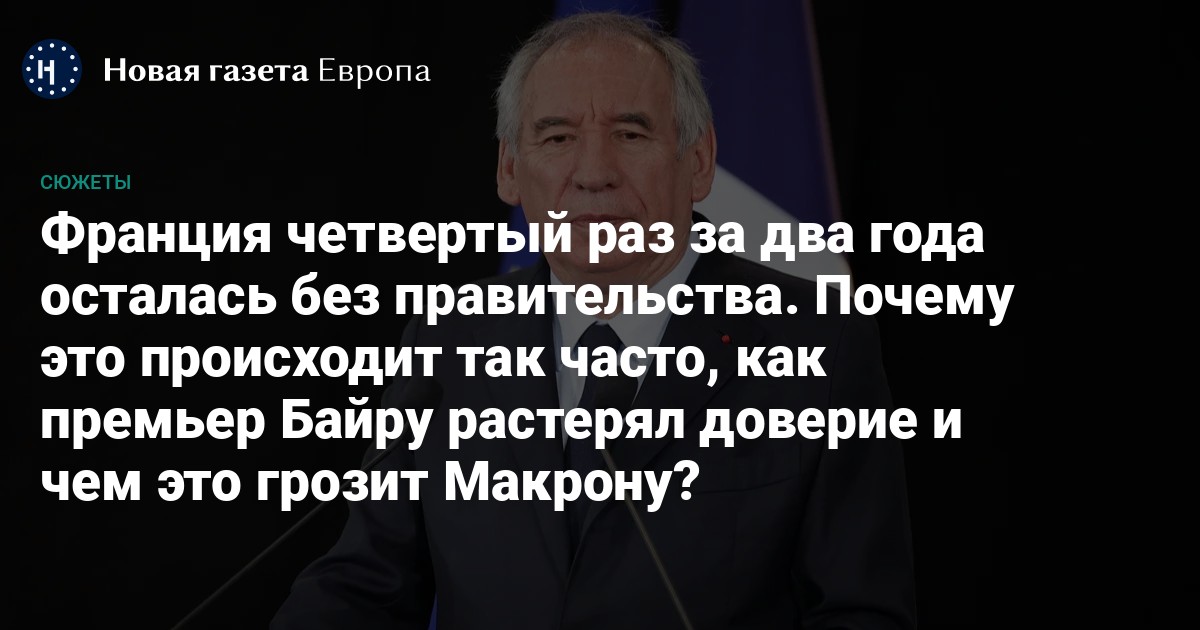 Это событие стало закономерным следствием системного кризиса, который с января 2024 года привел к отставке уже четырех премьер-министров: до Франсуа Байру это были Элизабет Борн, Габриэль Атталь и Мишель Барнье. История нынешнего витка политического кризиса восходит к лету 2024 года, когда на досрочных парламентских выборах, инициированных президентом Макроном, ни одной политической силе не удалось получить абсолютного большинства.