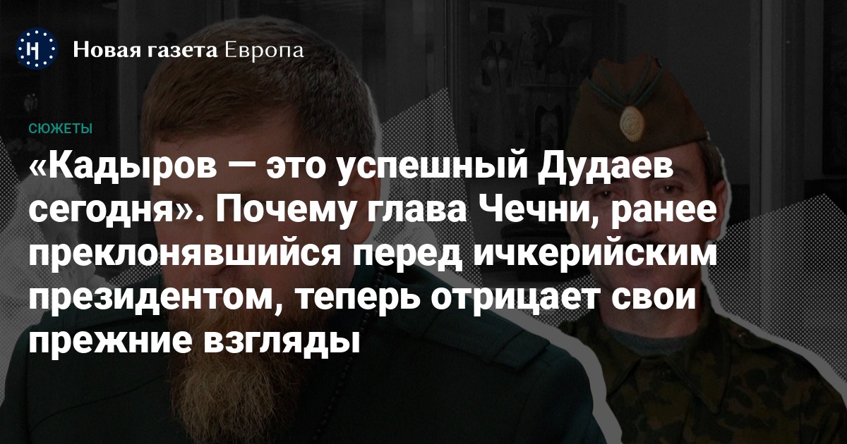 Просто в сегодняшнюю Чечню как национальное государство с той национальной государственностью, с той национальной доктриной, которая формулировалась еще при Дудаеве, они могут легко встраиваться, это не противоречит их взглядам. <…> Если иметь в виду идеологию современного кадыровского общества, Кадыров — это успешный Дудаев сегодня».