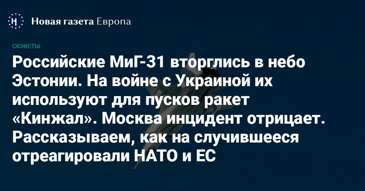 Как на этот раз реагируют стороны, чем Россия объясняет нарушение воздушного пространства чужой страны и для чего обычно армия РФ используют МиГ-31 — в материале «Новой газеты Европа».