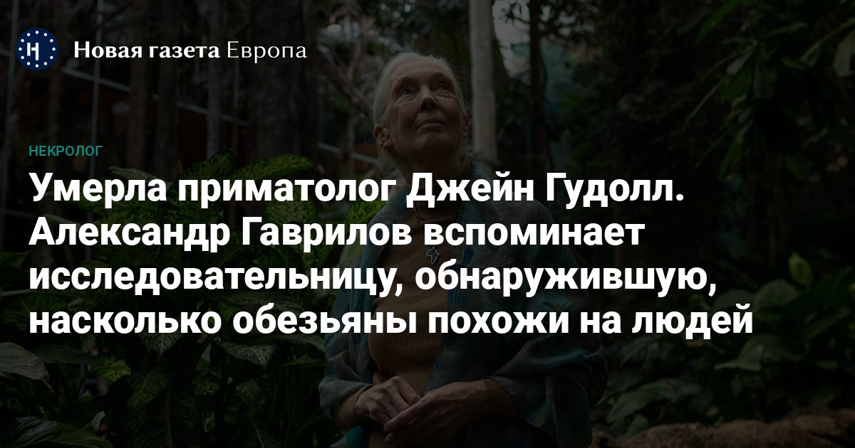 1 октября в возрасте 91 года ушла из жизни приматолог Джейн Гудолл. Она совершила открытия, изменившие не только наши представления о шимпанзе, но и о месте человека на планете. О Гудолл рассказывает председатель оргкомитета премии «Просветитель» и соучредитель издательства Vidim Books Александр Гаврилов.