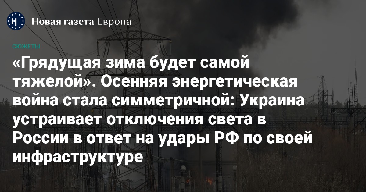 Россия перед началом зимы уже привычно атакует энергетические объекты в Украине, оставляя без тепла и воды больницы, школы и жилые дома. Однако впервые за время полномасштабной войны регулярные перебои со светом и теплом перестали быть проблемой исключительно украинцев: Киев дает жесткие симметричные ответы и атакует энергосистему российских городов. Основной удар пока приходится на Белгород, который с конца сентября часто вынужден жить в темноте.
