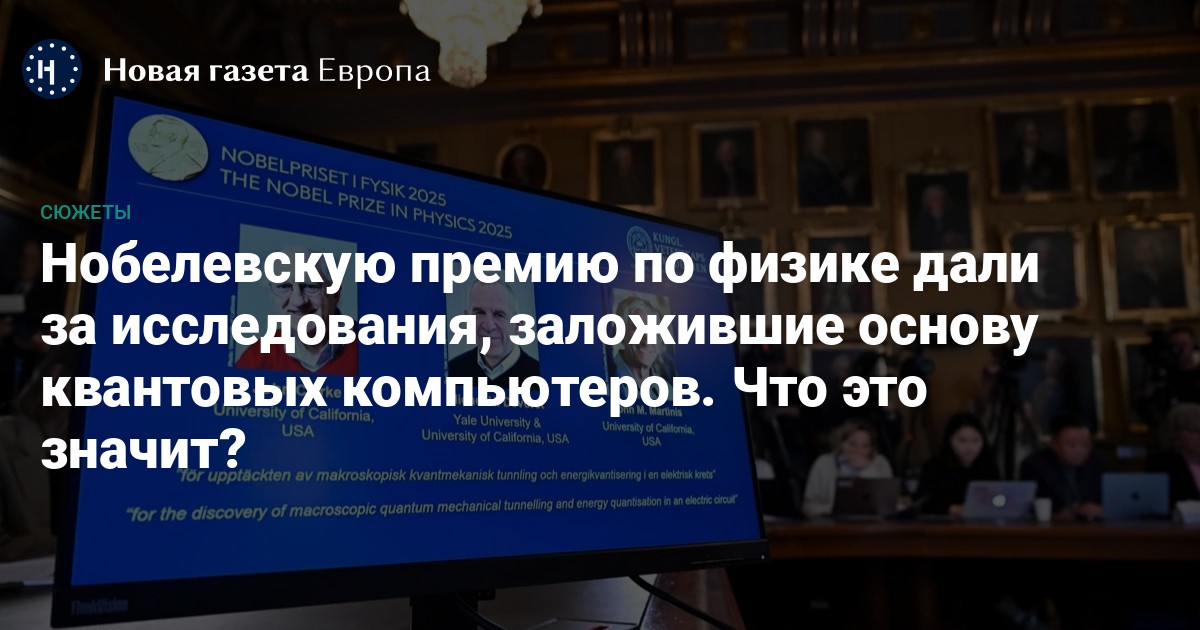 Нобелевский комитет 8 октября 2025 года вручил премию по физике. Ее лауреатами стали исследователи Калифорнийского университета в Беркли и Санта-Барбаре, а также Йельского университета Джон Кларк, Мишель Х. Деворе и Джон М. Мартинис. Ученых отметили за работу в области квантово-механического туннелирования, которая заложила основу для разработки современных квантовых технологий. «Нобелевская премия по физике этого года открыла возможности для разработки следующего поколения квантовых технологий, включая квантовую криптографию, квантовые компьютеры и квантовые датчики», — говорится в заявлении Нобелевского комитета.