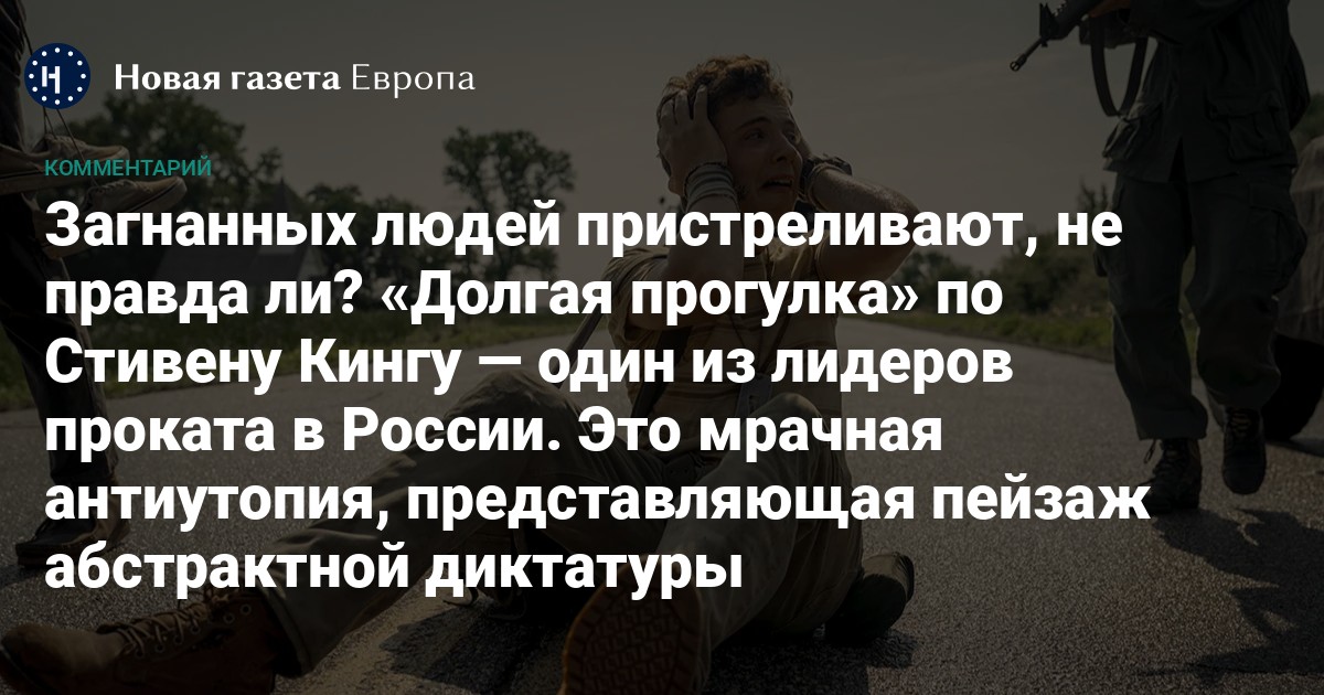 Экранизации Стивена Кинга в этом году выходят одна за другой, но «Долгая прогулка» выглядит самобытным продуктом, своего рода мрачным лаконичным ответом на модные антиутопии, где подростков заставляют играть в гладиаторские шоу. Фрэнсис Лоуренс, снявший почти все фильмы франшизы «Голодные игры», ставит камерную пьесу на открытом воздухе: молодые ребята идут, обгоняя смерть короткими шагами, в окружении тишины провинции — и танков. История взросления снята как похоронная процессия по американской мечте. Кинокритик Олег Тундра считает, что «Долгая прогулка», несмотря на брутальность и психологизм, плутает, когда необходимо прийти к большим политическим выводам.