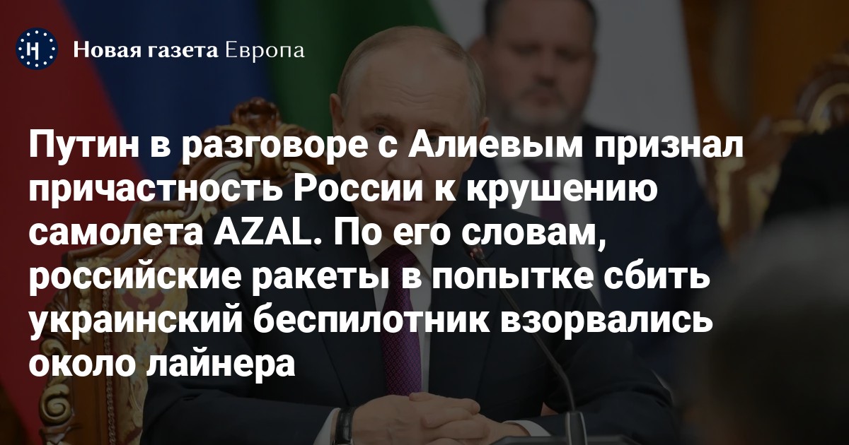 По словам Путина, крушение лайнера связано, среди прочего, с украинским дроном, который в этот момент находился в небе. Две российские ракеты не поразили самолет AZAL напрямую, а взорвались в нескольких метрах. Именно их обломки попали в лайнер.