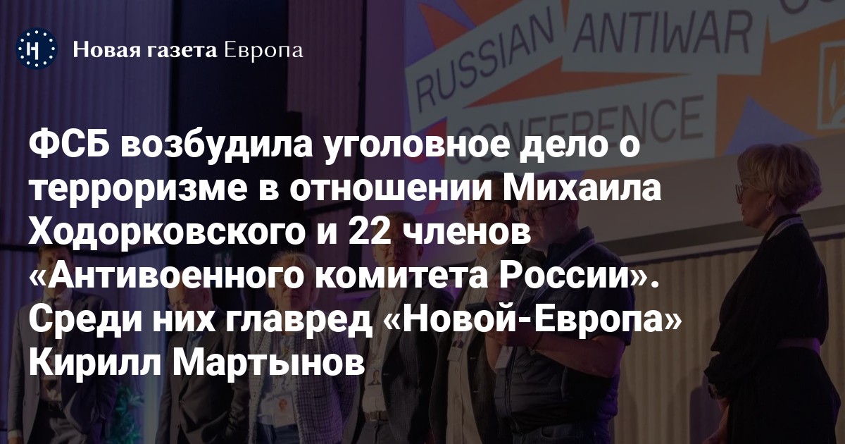 ФСБ возбудила уголовное дело по статьям о причастности к террористическому сообществу (ч. 1 и 2 ст. 205.4 УК) и насильственном захвате власти (ст. 278 УК) в отношении Михаила Ходорковского и 22 членов «Антивоенного комитета России». Об этом сообщает РИА «Новости» со ссылкой на пресс-релиз силовиков.