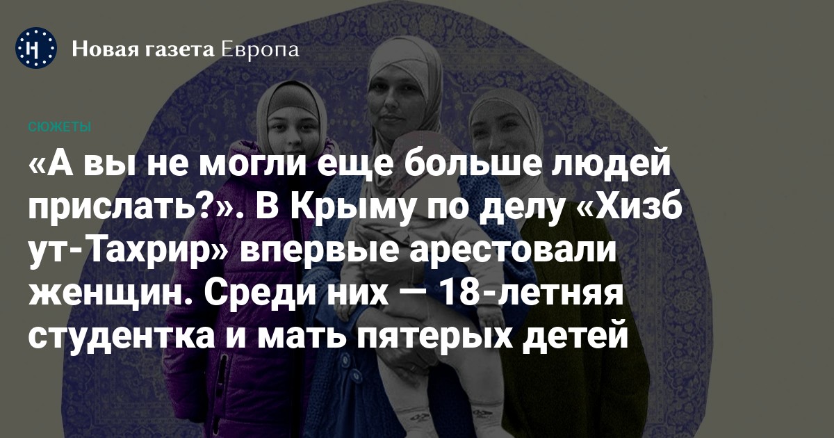 Никаких больше подробностей по первому женскому делу «Хизб ут-Тахрир» в Крыму нет. Материалы — засекречены, как и закрыты судебные заседания. После ареста всех женщин отправили в СИЗО № 1. К 122 задержанным до этого крымским мусульманам добавилось еще четыре женщины. Если раньше писали, что 367 детей крымских мусульман остались без задержанных отцов, то теперь к ним добавилось пятеро несовершеннолетних, оставшихся без задержанных матерей.