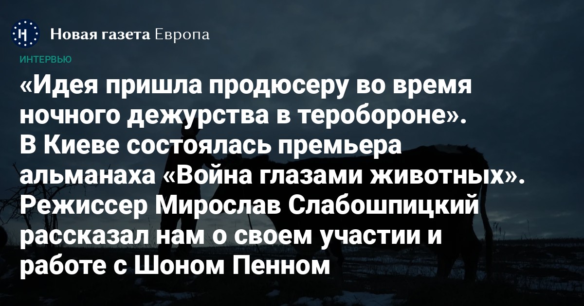 — Наш продюсер, мой замечательный друг Олег Кохан (он продюсировал фильмы Киры Муратовой и Отара Иоселиани), когда началась полномасштабная агрессия, нес ночное дежурство в теробороне. Ему пришла в голову идея «Войны глазами животных». Они нашли финансирование, и, когда уже сняли три части, Олег позвонил мне в Вену, спросил, могу ли я поучаствовать. Я ответил: «Нет». Он не сдался: «А если снять фильм со звездой?» — «Тогда конечно». Позже они сказали, что есть контакт с Шоном Пенном, спросили, что я по этому поводу думаю. Но что я мог думать — это восхитительно! Хотя часто такие разговоры ни к чему не приводят. Шону отправили линк на «Племя» (фильм Слабошпицкого 2014 года, снятый с непрофессиональными актерами на языке жестов. — Прим. ред.), он его посмотрел и дал согласие.