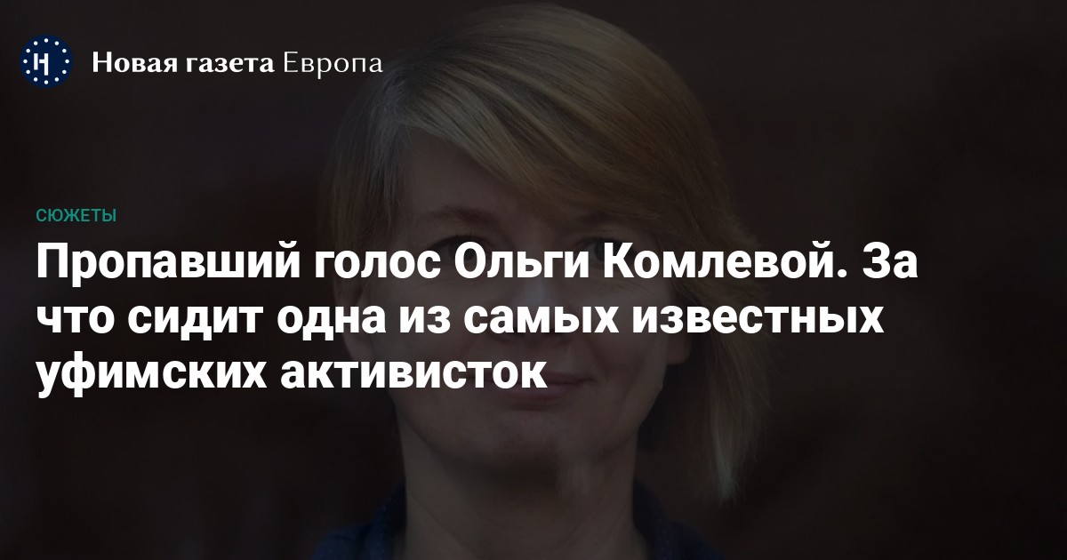 Активистка Ольга Комлева — человек в Уфе известный. Она была волонтером местного штаба политика Алексея Навального, писала о Баймакском деле, наблюдала на выборах, организовывала митинги. Местные силовики подали к ней 18 исков на сумму 5 млн рублей — за работу (именно так!) полиции на несанкционированных акциях в поддержку Навального в Уфе. А летом Комлева была осуждена на 12 лет колонии за экстремизм и военные фейки. Сегодня она уже полтора года в заключении и сменила три СИЗО. На фоне стресса от действий сотрудниц изолятора, граничащих с домогательствами, у Комлевой пропал голос.