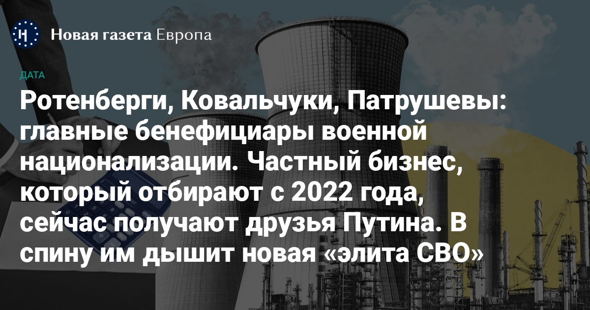 Крупнейшим частным бенефициаром военной национализации стал холдинг «Росхим», который связывают с Аркадием Ротенбергом — старым другом Путина. Он собирает конфискованные химические предприятия: купил «Волжский оргсинтез», «Метафракс Кемикалс» и «Дальнегорский ГОК», а также получил в управление «Салаватнефтемаш».