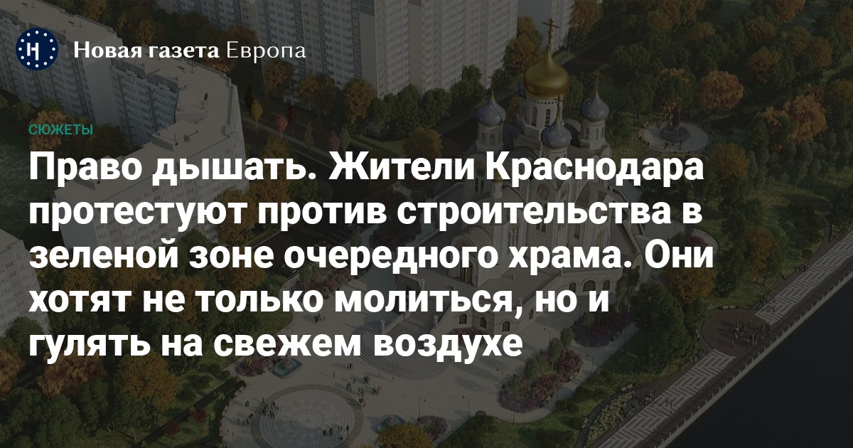 В начале ноября жители Краснодара начали собирать подписи за отставку мэра города Евгения Наумова. Хотя причин для недоверия к главе города накопилось достаточно, ключевым поводом стало нежелание властей отказаться от строительства храма на набережной в Юбилейном микрорайоне. С прошлого года жители собирают подписи, устраивают пикеты, записывают видеообращения. В ответ власти направляют полицию и называют протестующих «мракобесами».