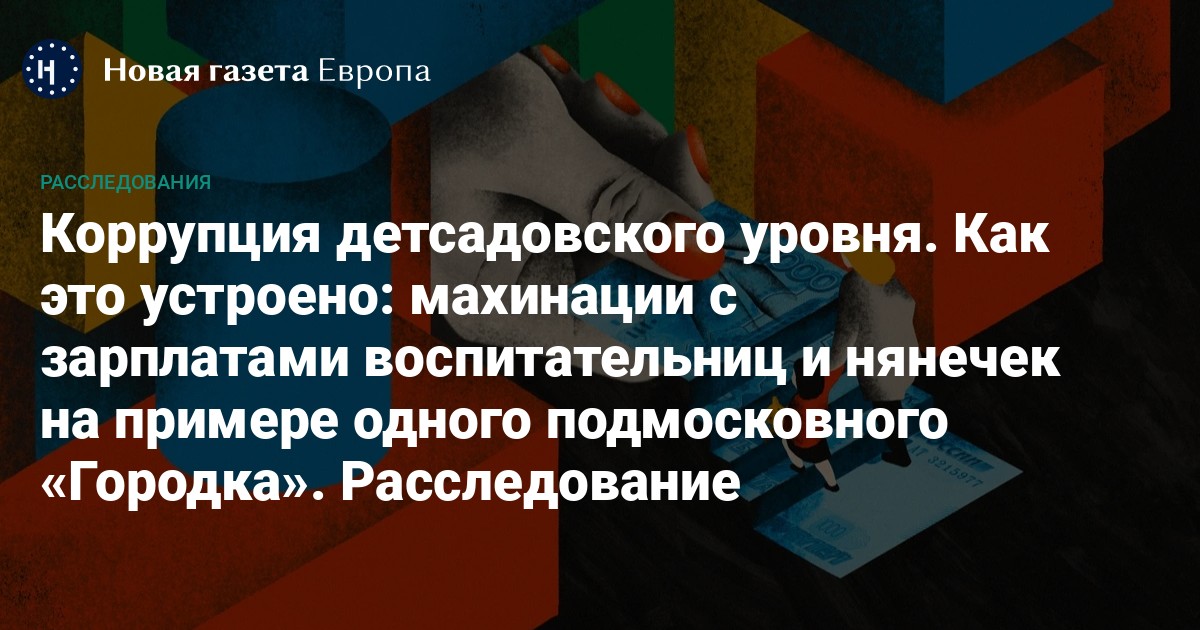 Месяца через три они получили расчетный листок, на котором карандашом были написаны цифры. Раздавала квитки Елена Кабанова, в то время заместитель заведующей по безопасности. «Кабанова сказала, что эту сумму нужно принести ей, но ничего не объяснила», — говорит Пушкаш. Поначалу напарницы думали, что на них расписали свободную ставку, — так часто делают в детских садах, чтобы иметь наличные для мелких нужд: купить бумагу для принтера, например. Но потом поняли, что «раскидывают» на всех — воспитателей и нянечек, причем далеко не одну ставку — в «Городке» было занято всего 40–50% ставок.