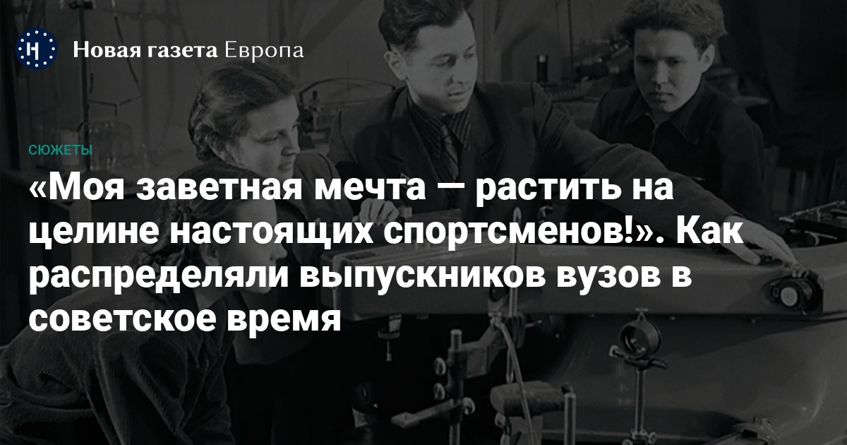 В 1963 году слесарь завода «Красный пролетарий», Герой Социалистического Труда Ермилов рассказывал в журнале «Огонек» о письме от некоего студента, которое его сильно огорчило. Студент писал, что скоро закончит институт, и жаловался, что распределение молодых специалистов «унижает человеческое достоинство». Историк Рустам Александер рассказывает, как работала — и в каких случаях не работала советская система распределения.
