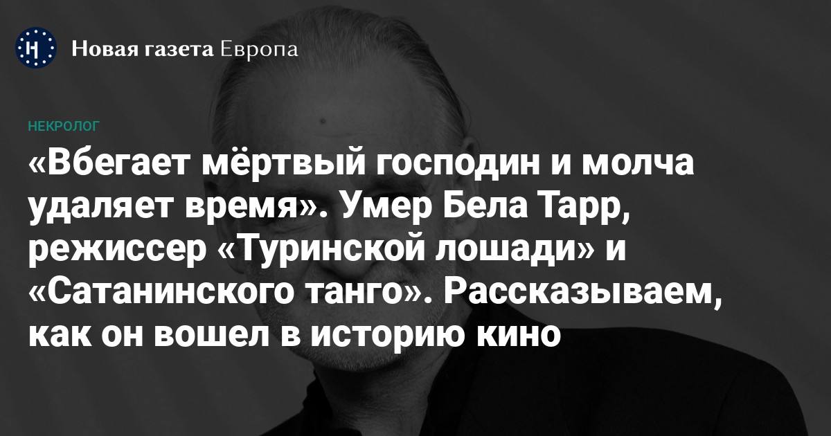 Бела Тарр прожил счастливую, пусть и полную трудностей жизнь большого художника: создал свой стиль, собрал вокруг себя единомышленников и со-творцов и сказал все, что хотел. Его фильмы, мрачные, загадочные, волнующие и невероятно медленные, испытание для зрителя — особенно для сидящих на игле рилзов и новостной ленты — кажутся мне идеальной экранизацией завершающего фрагмента поэмы Александра Введенского «Кругом возможно бог» (1931):