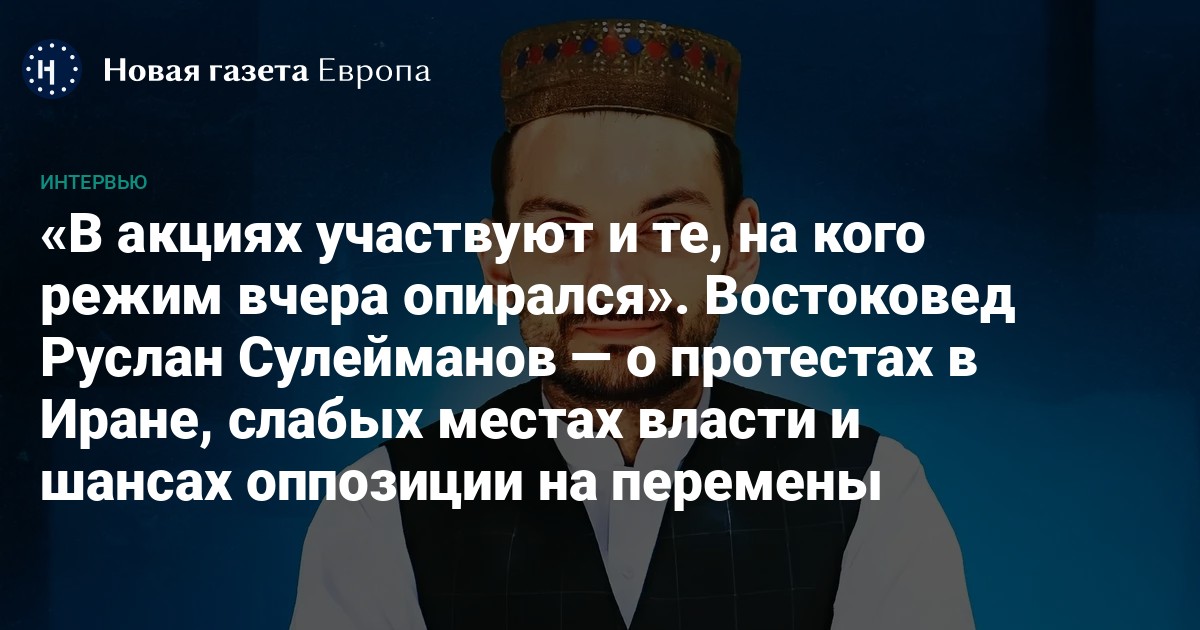 Главный редактор «Новой газеты Европа» Кирилл Мартынов поговорил с востоковедом Русланом Сулеймановым.