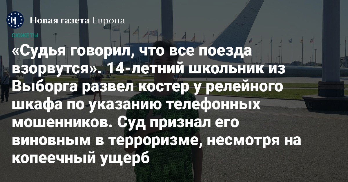 Около трех часов дня 12 апреля 2025 года 14-летний Богдан Протазанов вышел на железнодорожные пути рядом с вокзалом в Выборге. В руках он держал трехлитровую канистру с бензином и мобильный телефон. Богдан общался по видеосвязи в телеграме с мужчиной, которого считал сотрудником ФСБ. «Представитель спецслужбы» угрожал завести на родителей мальчика уголовное дело и посадить их в тюрьму пожизненно, если подросток ослушается.