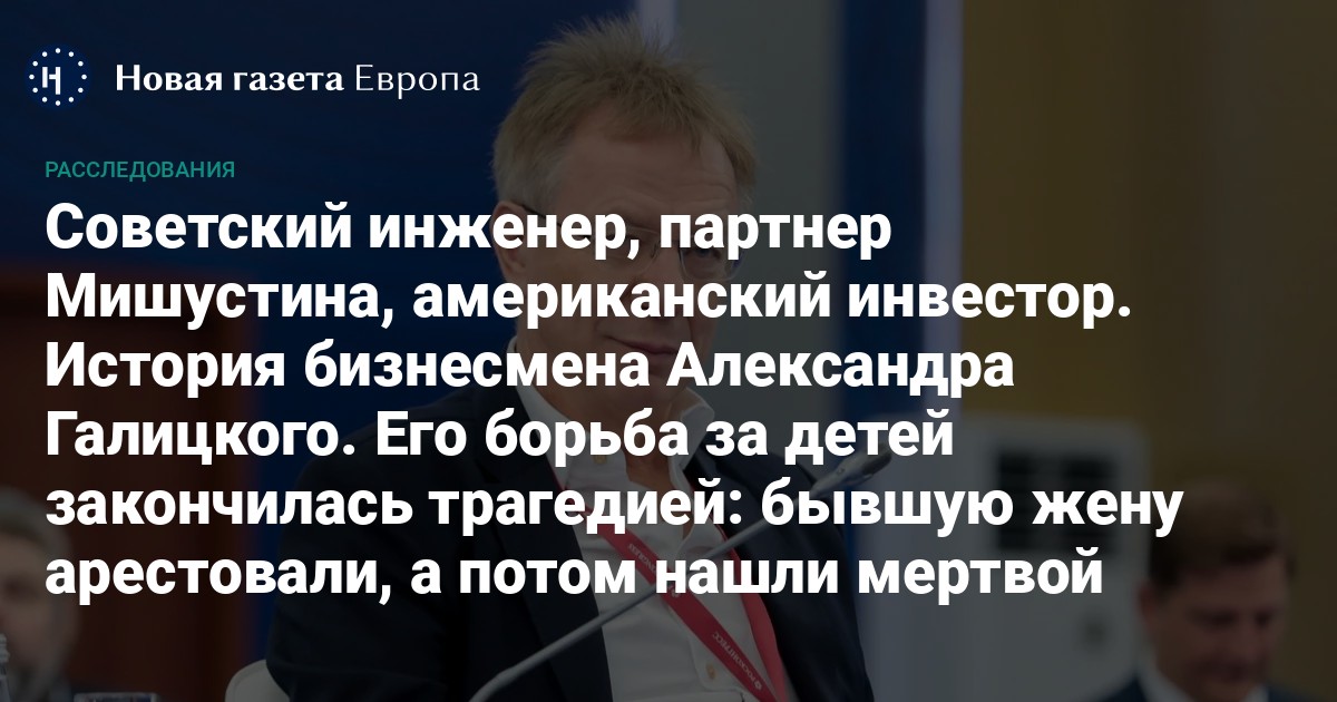 Александр Галицкий — в центре внимания СМИ из-за трагического разворота, который приняла история с его разводом. Бывшую супругу бизнесмена Алию Галицкую, которая судилась с ним из-за детей и обещала опубликовать на него компромат, арестовали по делу о вымогательстве, а затем нашли мертвой в изоляторе. Уже после ее смерти в сети появилось видео с тем самым компроматом: она обращается к Владимиру Путину и утверждает, что Галицкий поддерживает Украину и пропагандирует «европейский образ жизни» дочерям.