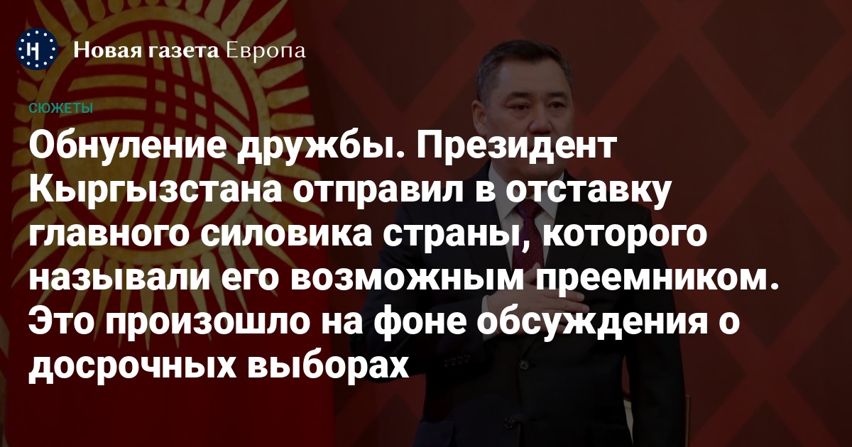 Президент Кыргызстана Садыр Жапаров на этой неделе сделал еще один шаг к укреплению своей единоличной власти в республике, которая стремительно движется по пути ограничения свобод и не скрывает ориентации на Москву. Он отправил в отставку Камчыбека Ташиева — главу всесильного Госкомитета национальной безопасности (ГКНБ) и вице-премьера страны. Жапаров и Ташиев де-факто составляли правящий тандем, который в стране называли «Эки дос» — «Два друга». Объясняя 13 февраля свое решение, президент заявил: в случае его бездействия кыргызский народ в ближайшее время «начал бы делиться на две части».