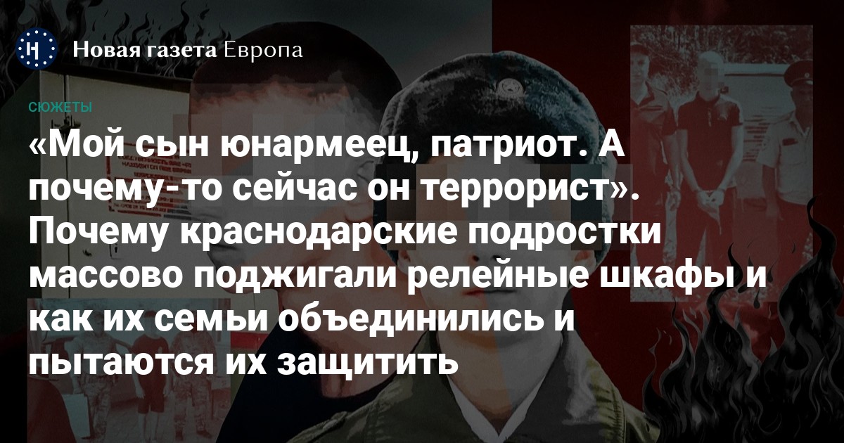 Родители десяти подростков, находящихся в СИЗО-1 Краснодара за поджоги релейных шкафов, опубликовали петицию, чтобы переквалифицировать дела о терроризме на статьи о порче имущества. Семьи арестантов утверждают, что их дети не хотели навредить родине, а лишь пытались подзаработать — кто-то на ремонт мопеда, кто-то на походы в кино. Издание «Ветер» публикует истории двух восьмиклассников, которые сегодня ожидают военного суда.