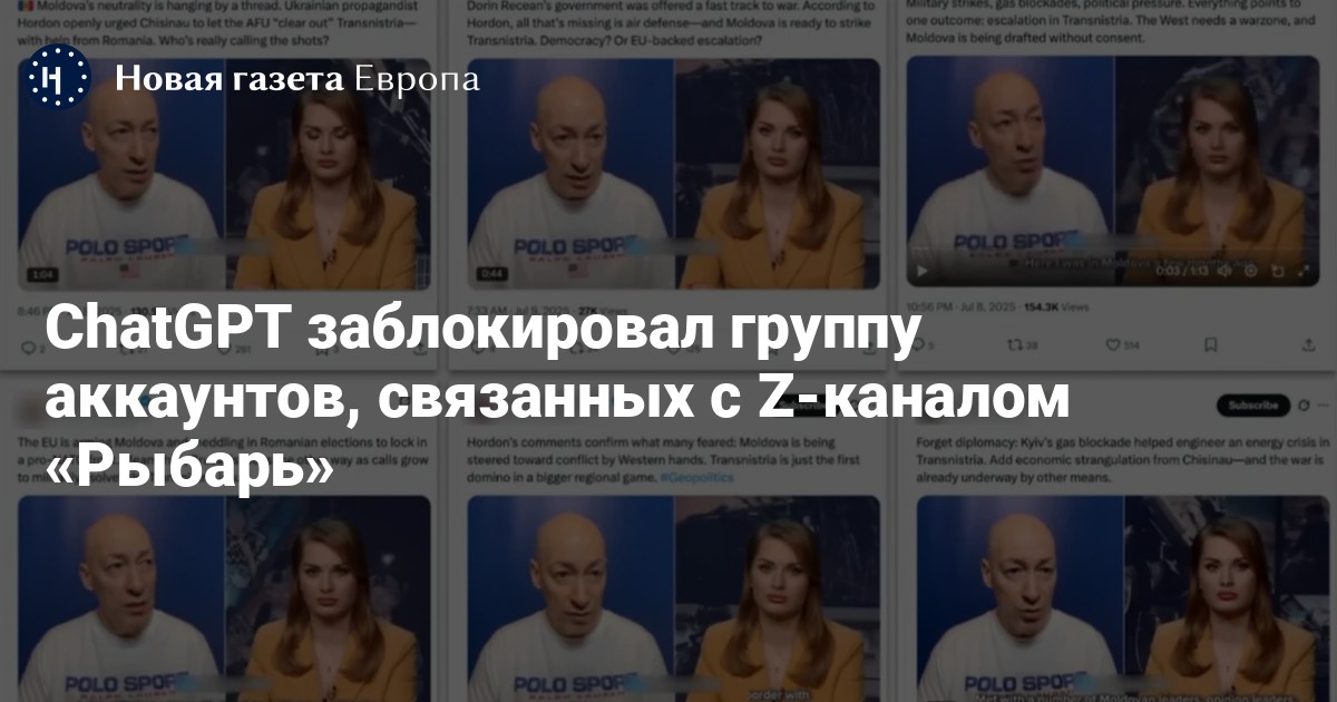 ChatGPT заблокировал группу аккаунтов, связанных с Z-каналом «Рыбарь», говорится в отчете OpenAI о злоупотреблениях своими ИИ-моделями.