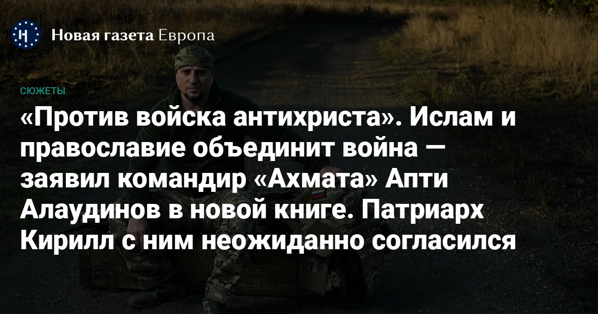 Командир батальона«Ахмат» и главный по идеологии в Минобороны РФ Апти Алаудинов выпустил книгу«Войско Иисуса (Исы, мир Ему) в битве против войска даджаля-антихриста» о том, что ислам и православие могут объединиться только на почве войны против сатаны и за единые семейные ценности.